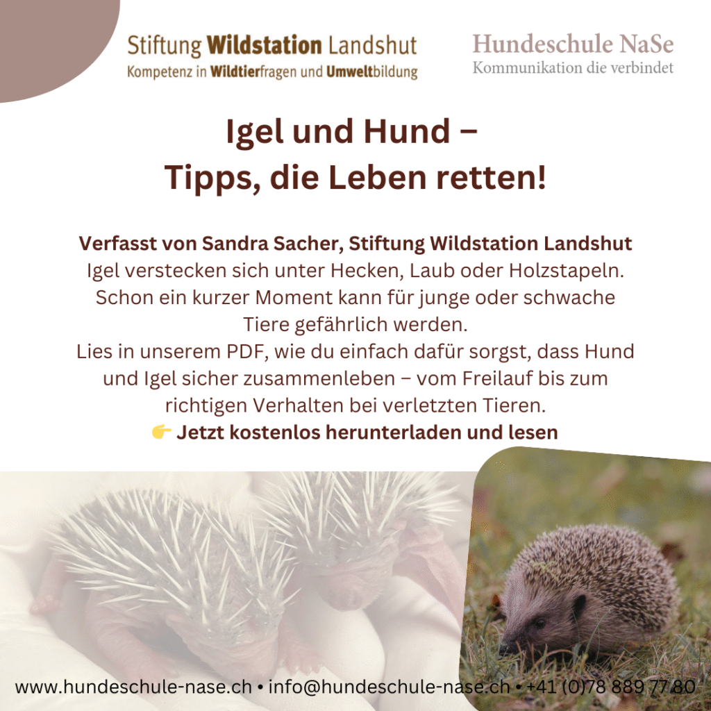 Igel leben mitten unter uns – in Hecken, unter Holzstapeln, in Laub- oder Reisighaufen und manchmal sogar unter dem Gartenhaus. Genau dort geraten sie oft in Not, weil neugierige Hunde ihre Verstecke entdecken.
