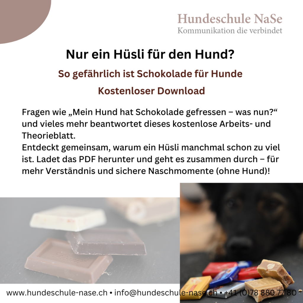 Fragen wie „Mein Hund hat Schokolade gefressen – was nun?“ und vieles mehr beantwortet dieses kostenlose Arbeits- und Theorieblatt. Entdeckt gemeinsam, warum ein Hüsli manchmal schon zu viel ist.